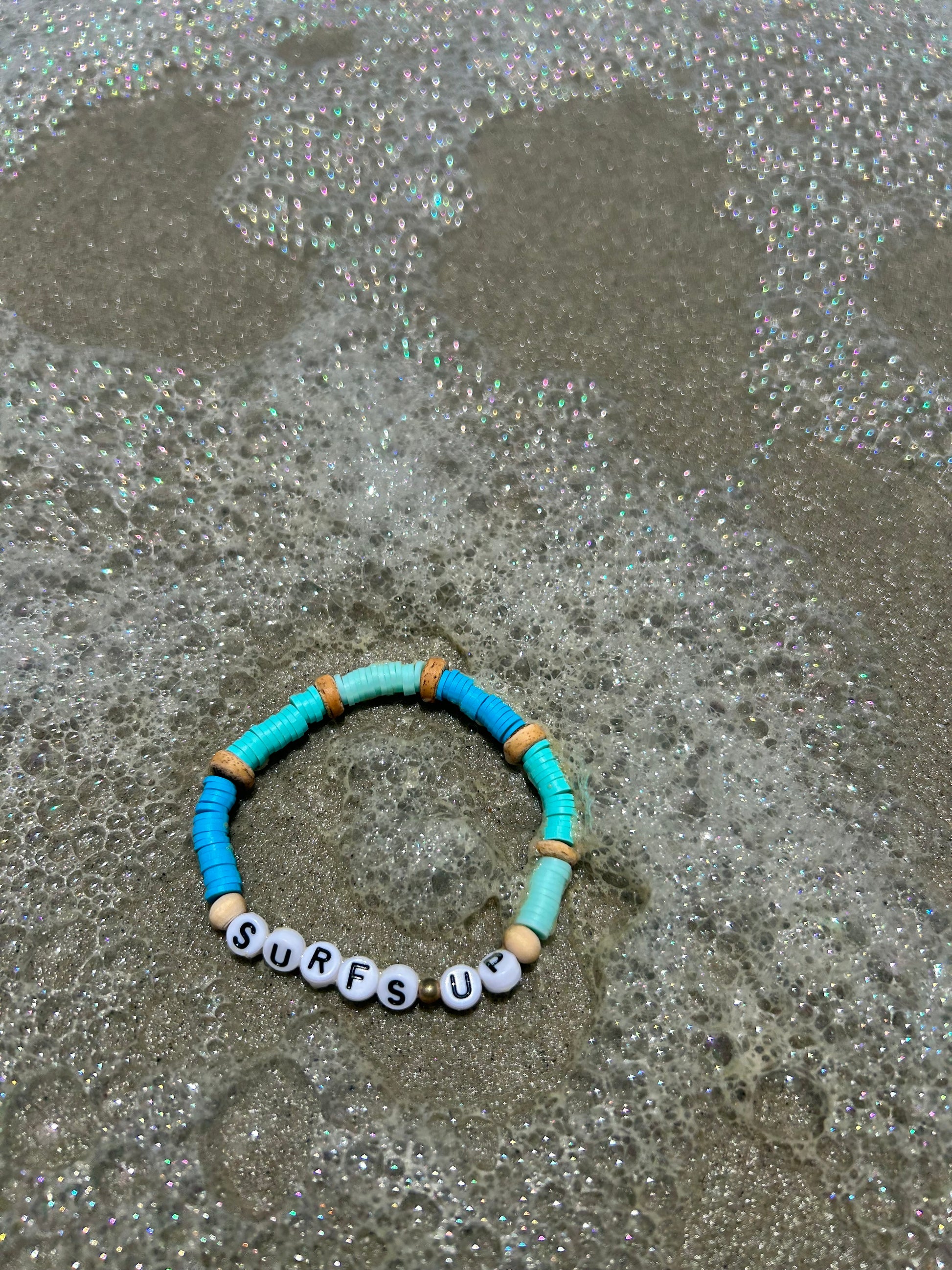 Ride the wave of coastal vibes with this vibrant "Surfs Up" bracelet. Featuring an ocean-inspired palette of turquoise, aqua, and seafoam green flat beads, it's accented with natural wooden spacers and playful white letter beads that spell out the phrase "SURFS UP." The bracelet exudes carefree beach energy, perfect for surfers, sun-chasers, and anyone who dreams of salty air and sandy toes. Whether you're catching waves or just channeling laid-back summer style, this bracelet is your go-to beach accessory. ( Even if out of stock it will still be made and shipped to you)